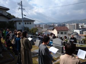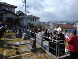 本日礼拝後、牛田墓苑に移動し、「聖徒の家」で2名の方の納骨式と墓前礼拝を行いました。