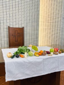 本日、収穫感謝合同礼拝です。こどもたちと共に礼拝を守りました。礼拝の中でこどもたちの祝福式が行われ、一緒に手話で「キリストの平和」を歌い、収穫の喜びを分かち合いました♬