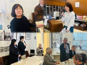 本日礼拝後、2階のソシアルホールでコーヒーアワーが持たれました。サンドイッチ、飲み物をいただきながら楽しい交わりの時をともにしました。新しく来られた方、10月生まれの皆さまから一言いただきました。礼拝後貫目一明さん記念会・納骨式を持たれるために、礼拝から出席されたご遺族の長西さん及びご関係者の方々からも一言お話しいただきました。