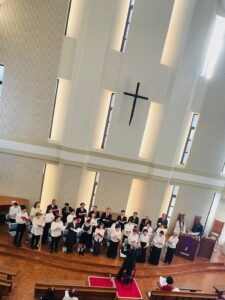 本日の礼拝の中で、上海グリークラブによる奉献演奏(讃美歌21:480番「新しい時をめざし」)がありました。