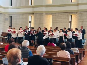 本日の礼拝後に、礼拝堂で引き続いて、上海グリークラブによるミニコンサートがありました。当教会でのコンサートは6年ぶりとなります。慶應義塾中国ワグネルOB合唱団の友情出演、締め括りの曲では、女声合唱団が加わって混声合唱で演奏されました。