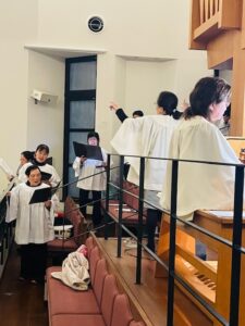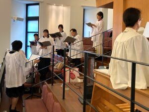 今日からアドヴェントに入りました。主日礼拝で最初のロウソクに火をともしました。礼拝のなかで、クワイヤアイリスの奉献演奏が行われ、イエス様の御降誕を迎える喜びを共にしました♬
