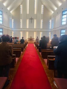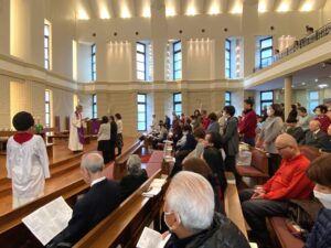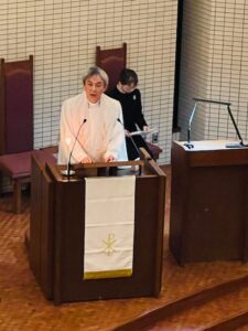 アドヴェント第3主日の本日は、こどもたちによる点火、主の祈りの先唱及び聖書朗読、そして向井牧師の説教「喜びへの出発」、最後に「イエスがこころに」の賛美歌を歌いクリスマス礼拝を守りました。