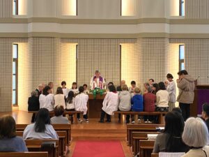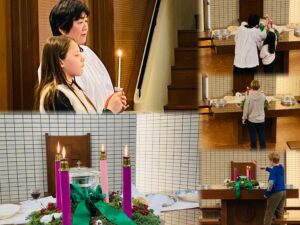 アドヴェント第4主日の本日は、こどもたちにより4本のろうそくを灯し、クリスマス礼拝を守りました。礼拝において3名の方の洗礼式、そして聖餐式が執り行われ、聖歌隊による「踊れ、わが心」の歌声が響き、クリスマスの喜びをともに分かち合いました♬