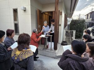 本日礼拝後、向井牧師と教会員有志、子どもたちでクリスマス・キャロリングに行きました。6名の方をお訪ねし、ご一緒にクリスマスの賛美歌を歌いました♪