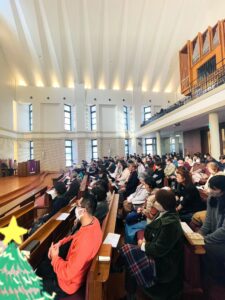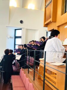 今日からアドヴェントに入りました。主日礼拝で最初のロウソクに火をともしました。礼拝のなかで、クワイヤアイリスの奉献演奏が行われ、イエス様の御降誕を迎える喜びを共にしました♬